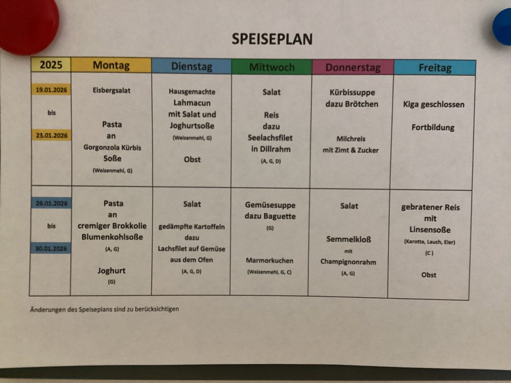 Der Speiseplan vom 19.1. bis 30.1.2026